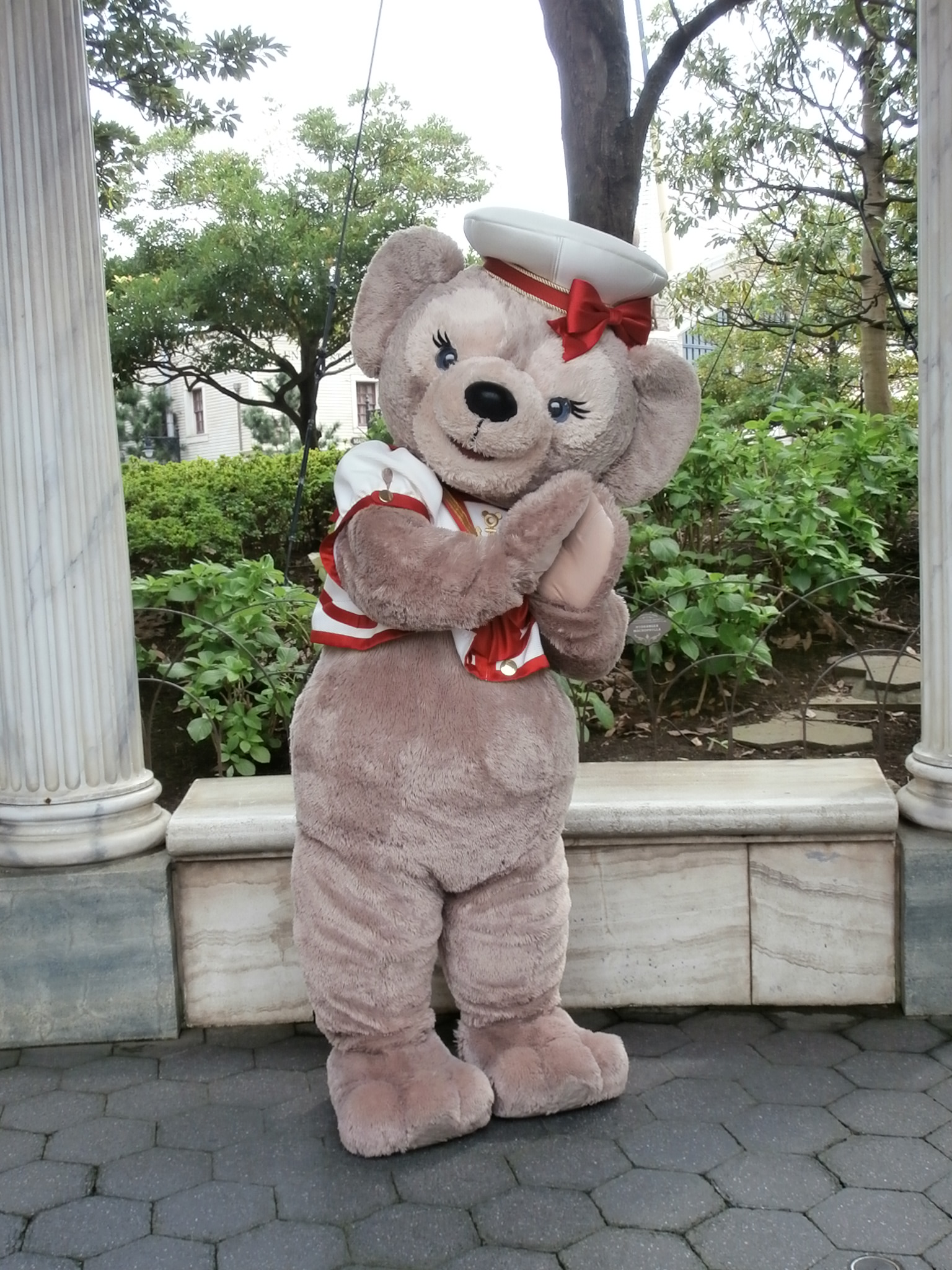 現在、シーでは、ダッフィー、シェリーメイが、パーク内の各エリアで、整列グリーティングを行っていて、どちらも大人気になっています。