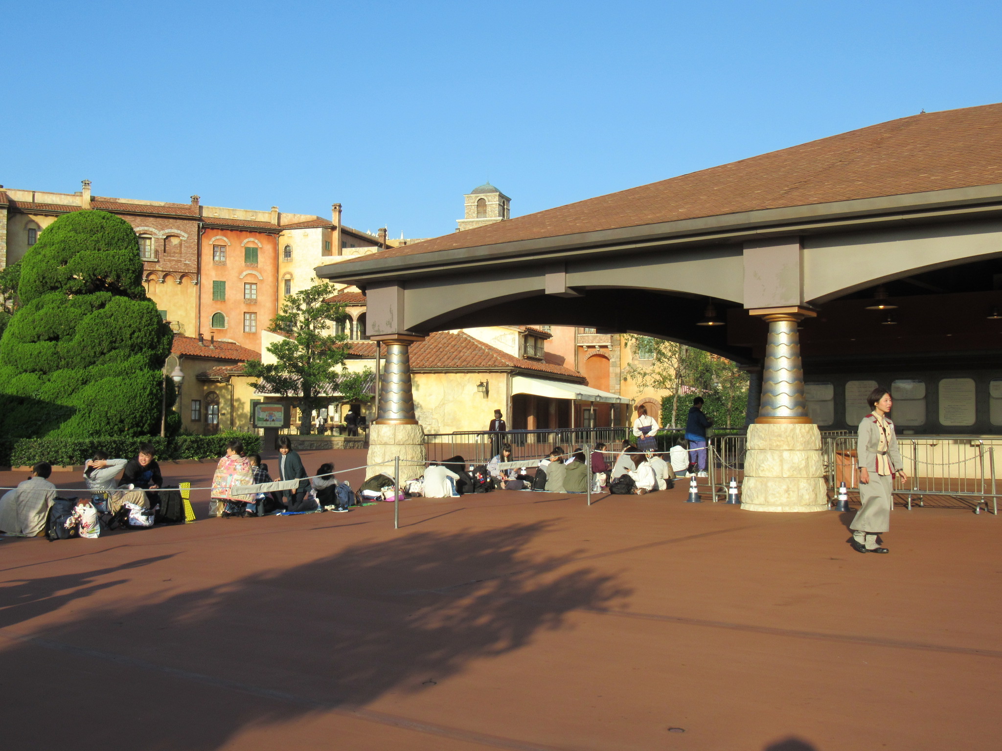 その最前列を取るためには、夜明け前からシーの入り口で待機しないと無理なのが現状です。