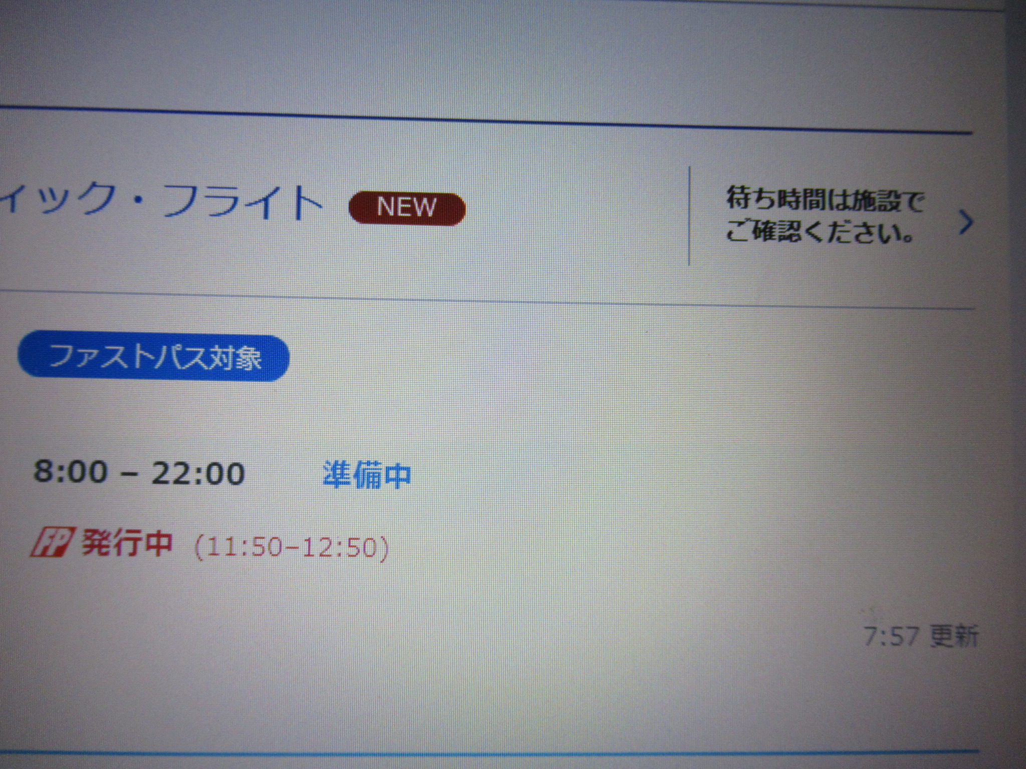 こちらも、スマホでFPが運用開始して以降、朝イチに、スマホでFPを発券するゲストが増え、発券終了が、運用前より、格段に早くなっています。早い日で、開園時間の30分後には発券終了。平日でも1時間持たない感じです。