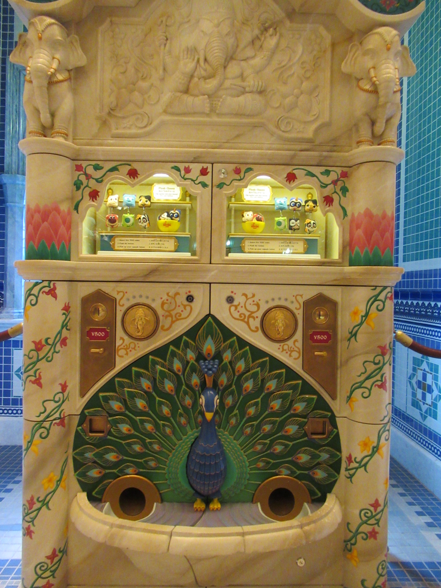 こちらが、ガチャガチャ販売機。噴水のデザインをデフォルメして、かわいい感じに仕上がっていますね。トップにいるのは、ヒンドゥー教の、象の姿の神様、ガネーシャ神です。