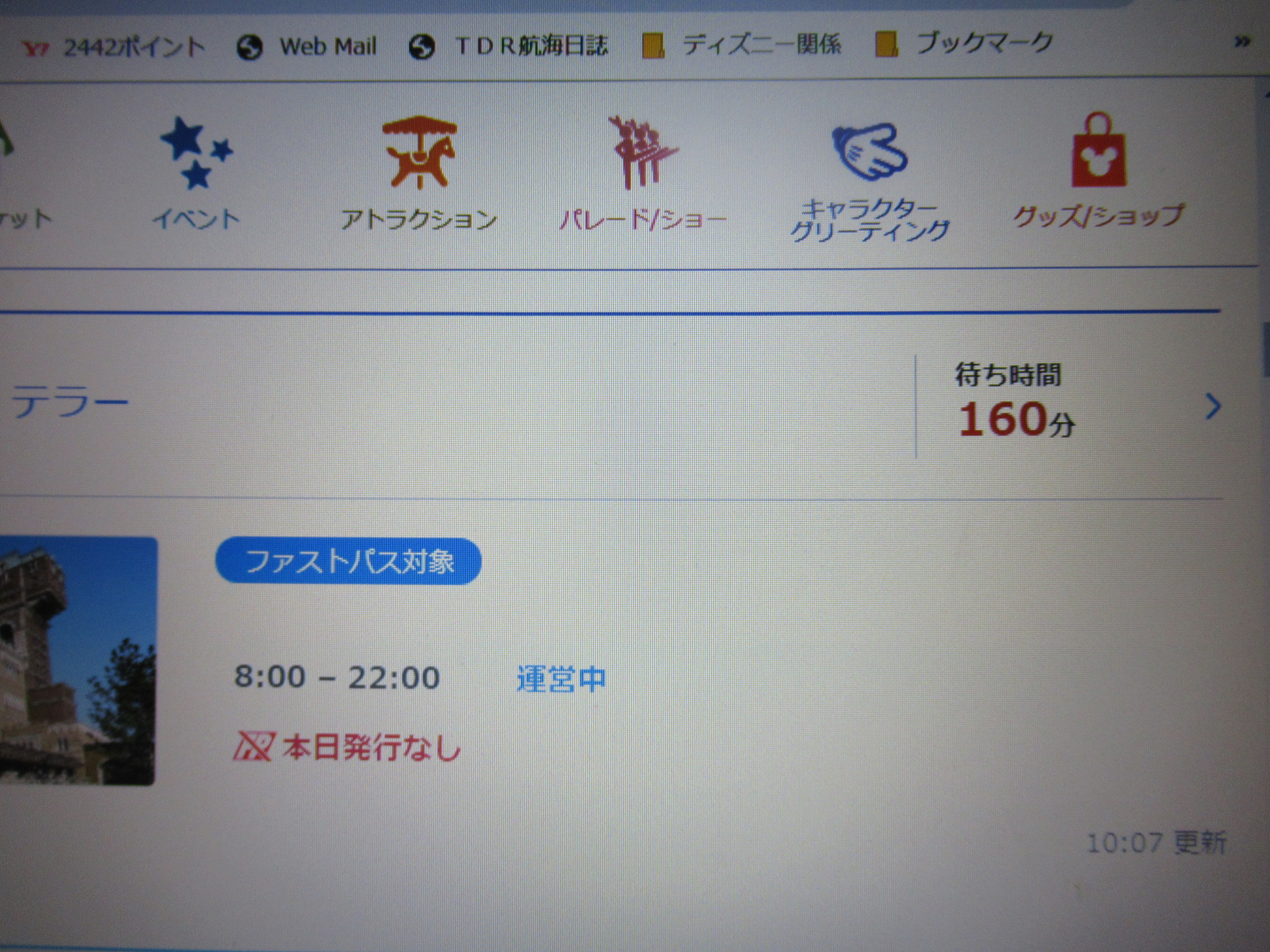 先ほど、TDRのHPを確認したところ、今日は、タワーのFPが発券されていました。