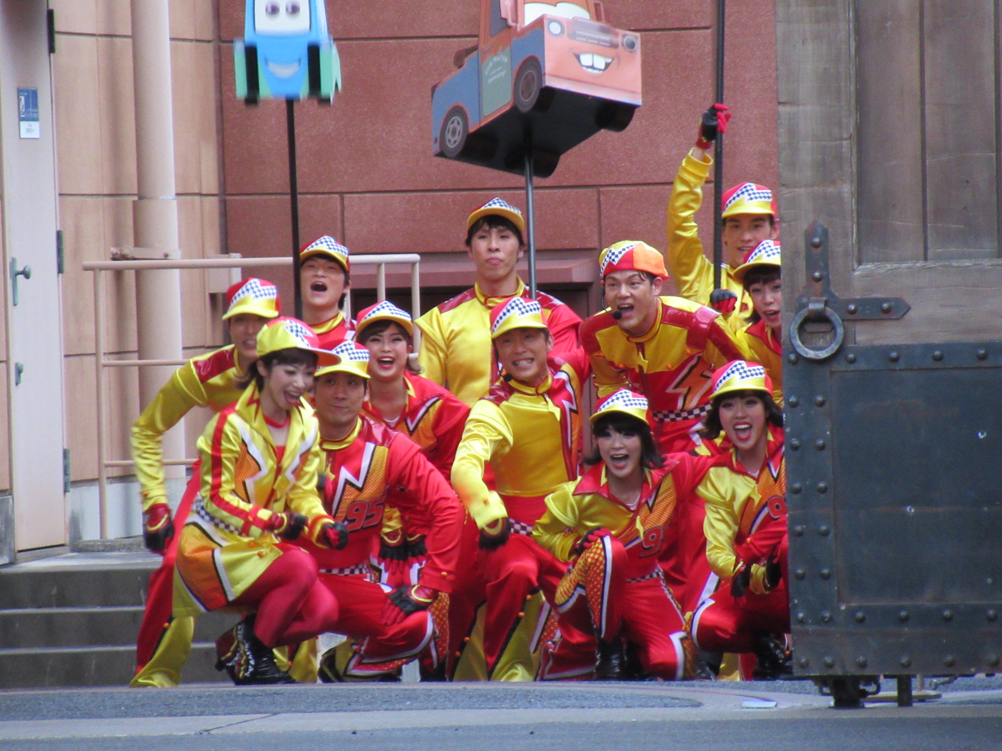 そのため、カーズ風のコーディネイトに身を包み、パレードルートの最前列で、必死にアピールするゲストがたくさん!! ただ、ダンサーさんは、やはり、カーズが大好きな男の子とその家族をメインに選ぶので、パレードに参加できる可能性は、かなり低いです。