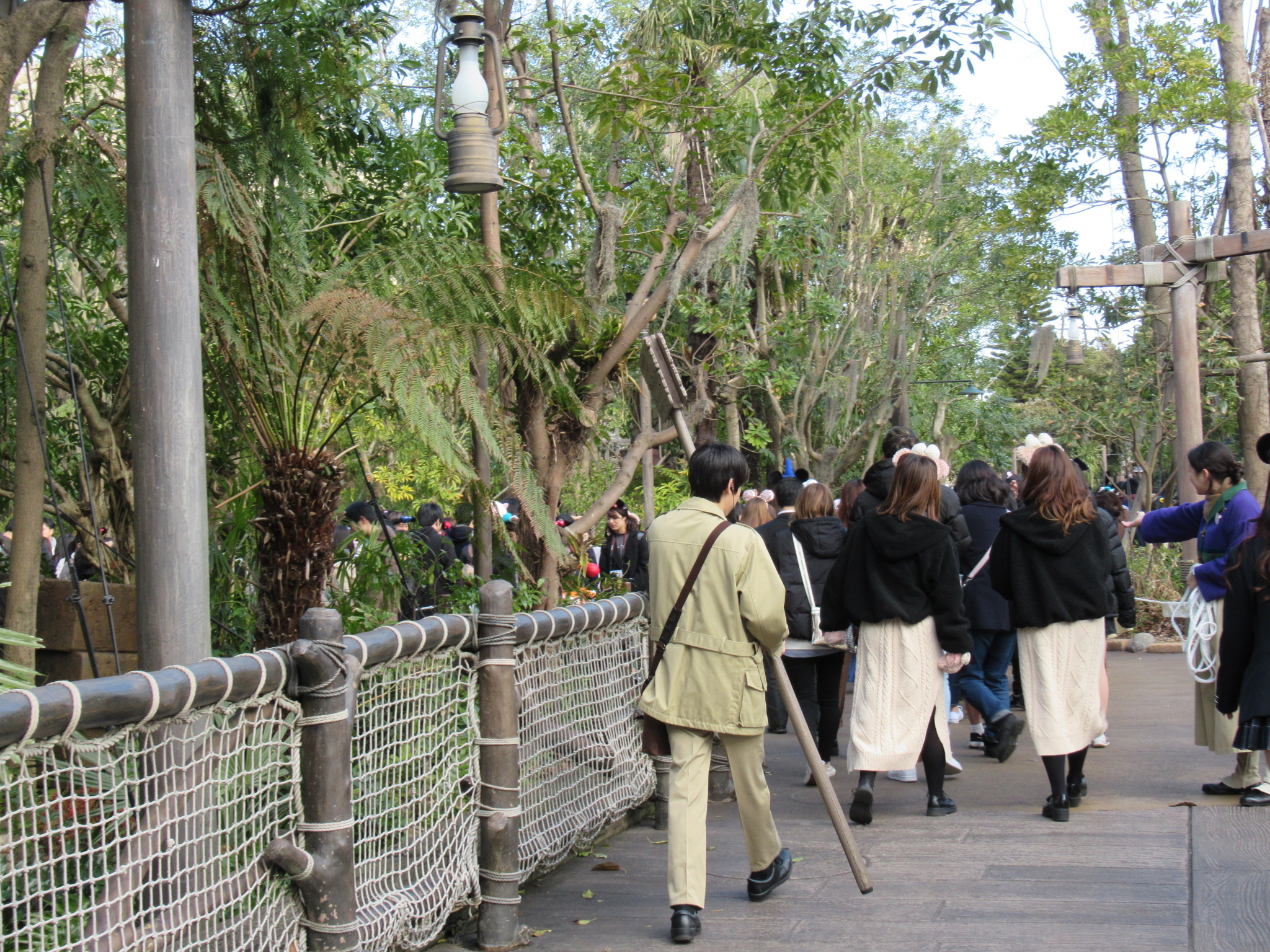 こういう状態のロストリバーデルタは、歩道がゲストでいっぱいで、さながら、土日祝の原宿のような混み具合になります。シーの奥地にゲストがいっぱいって、今イチ、雰囲気に合わないんですけどね。