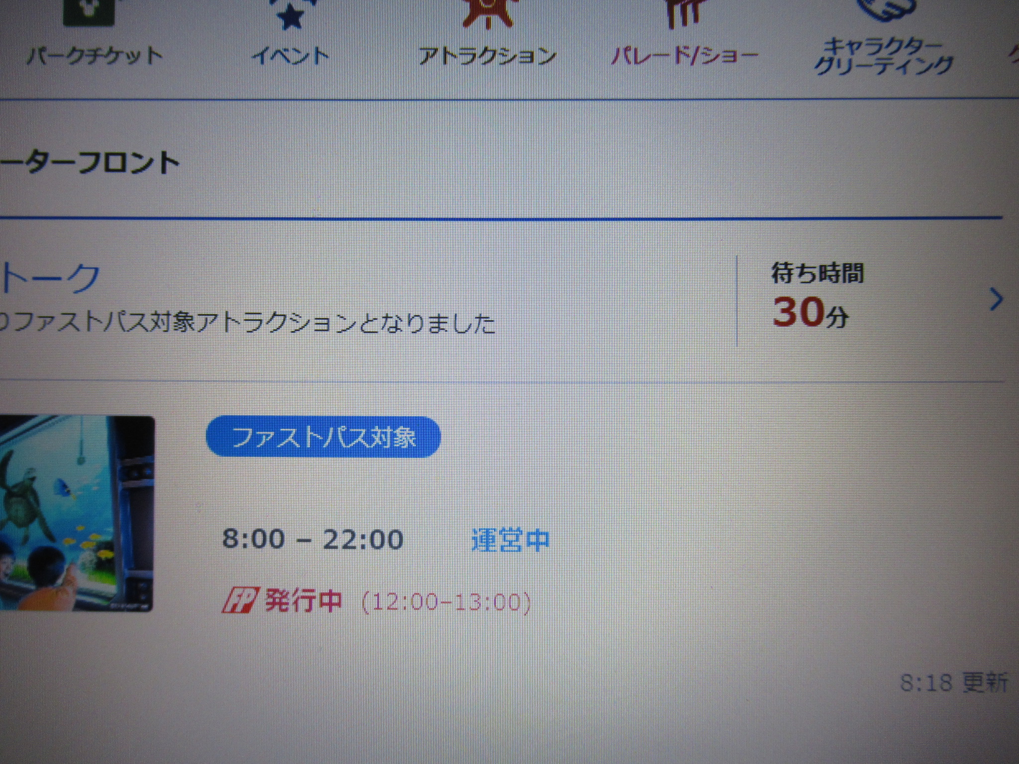 今日のシーは、8時開園でしたが、現地時間の8時18分頃で、ソアリンのFPは発券終了しています。