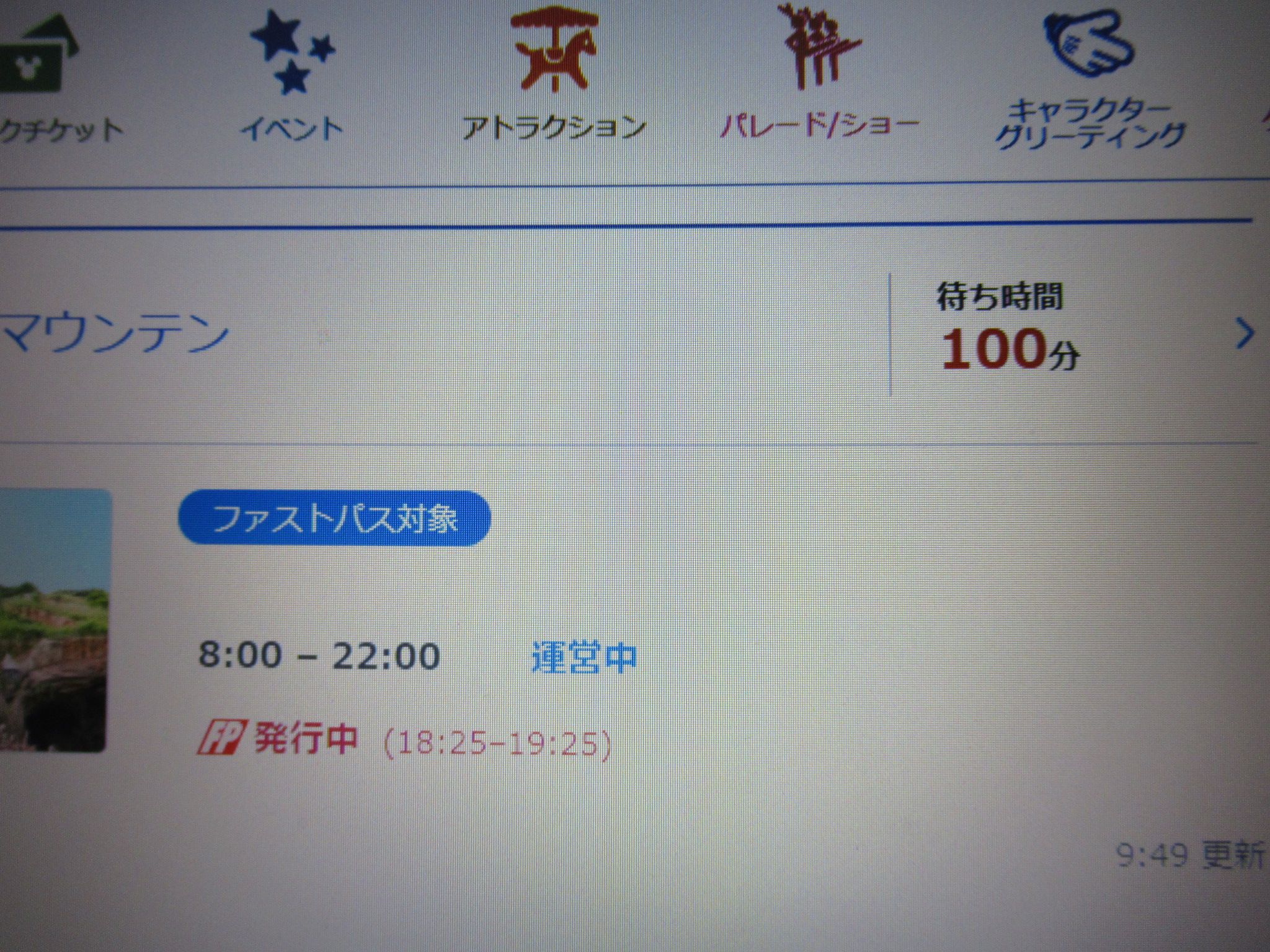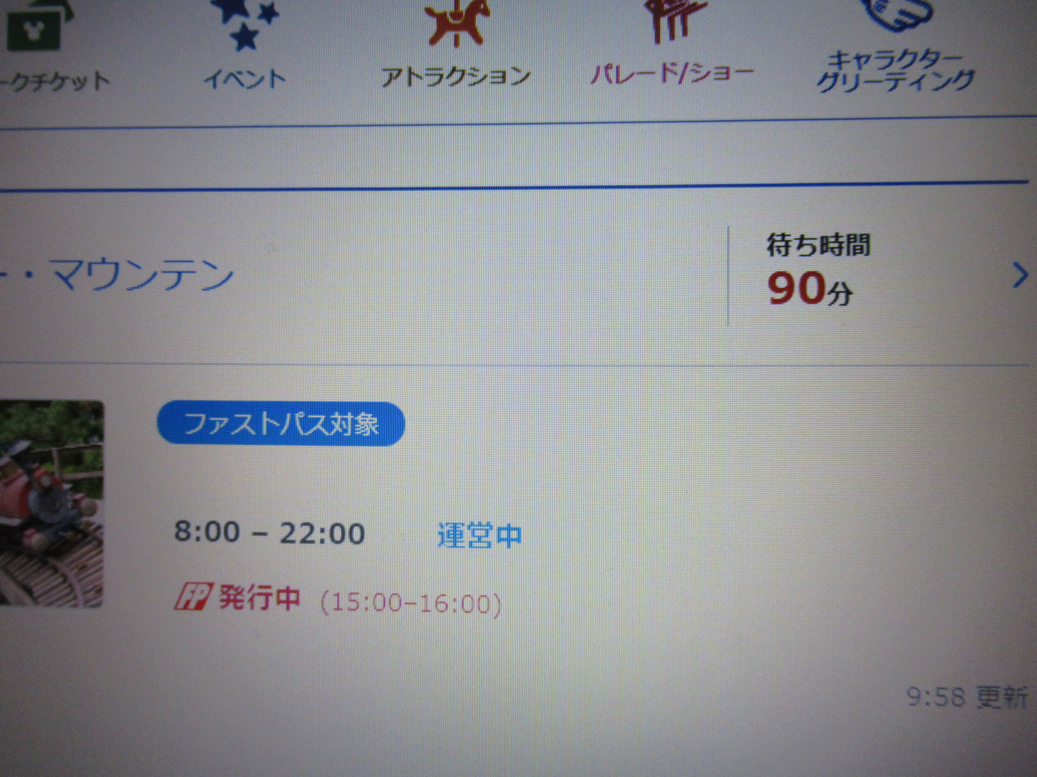これは、開園1時間後の、ビッグサンダーマウンテンの、FP,スタンバイ状況。