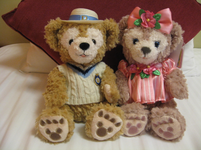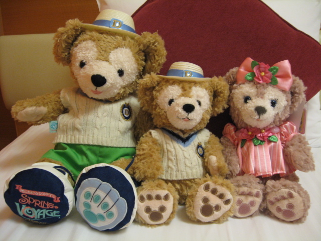スプリングヴォヤッジ限定のコスチュームを着た、SサイズのダッフィーとSSちゃん。