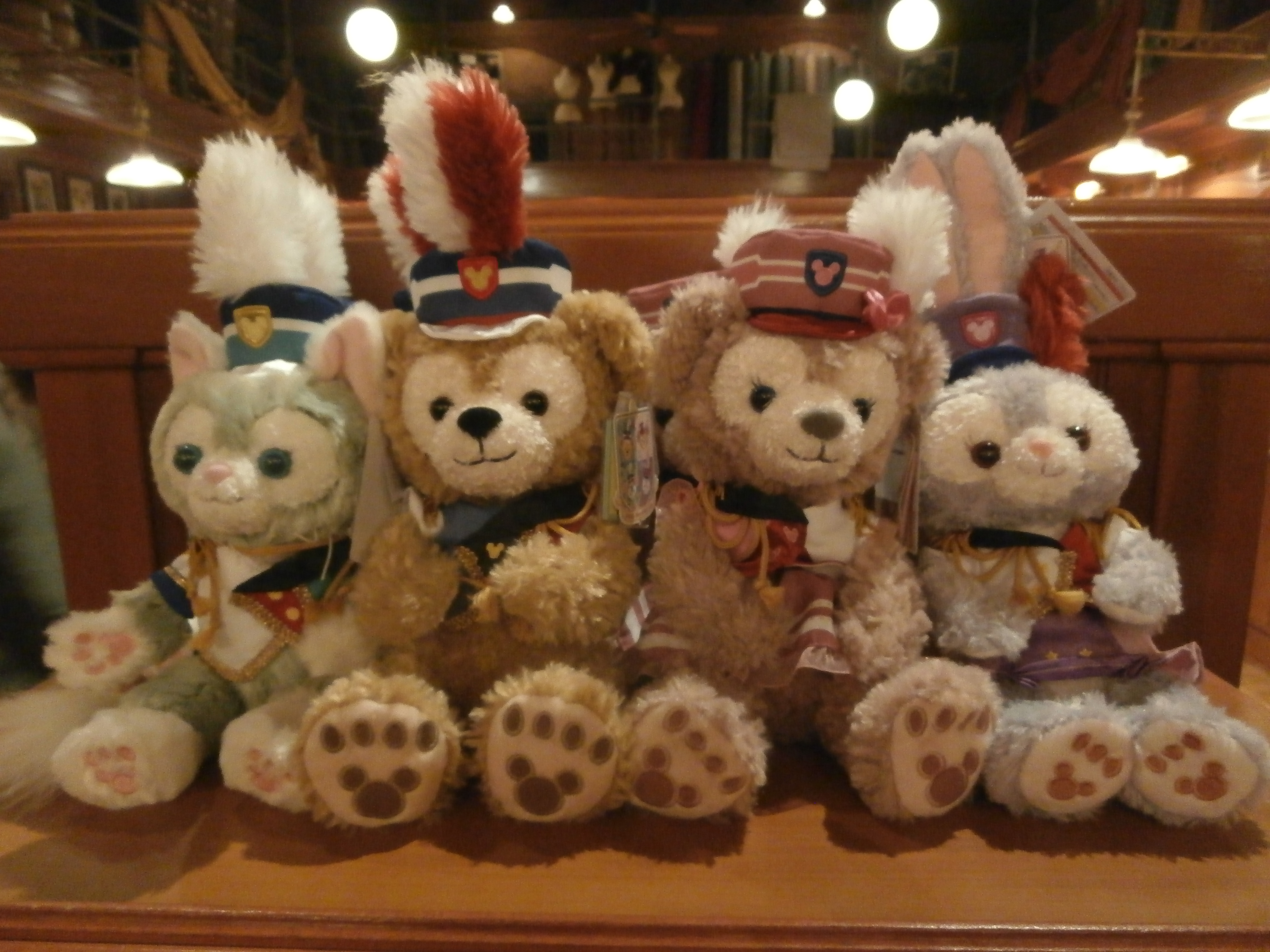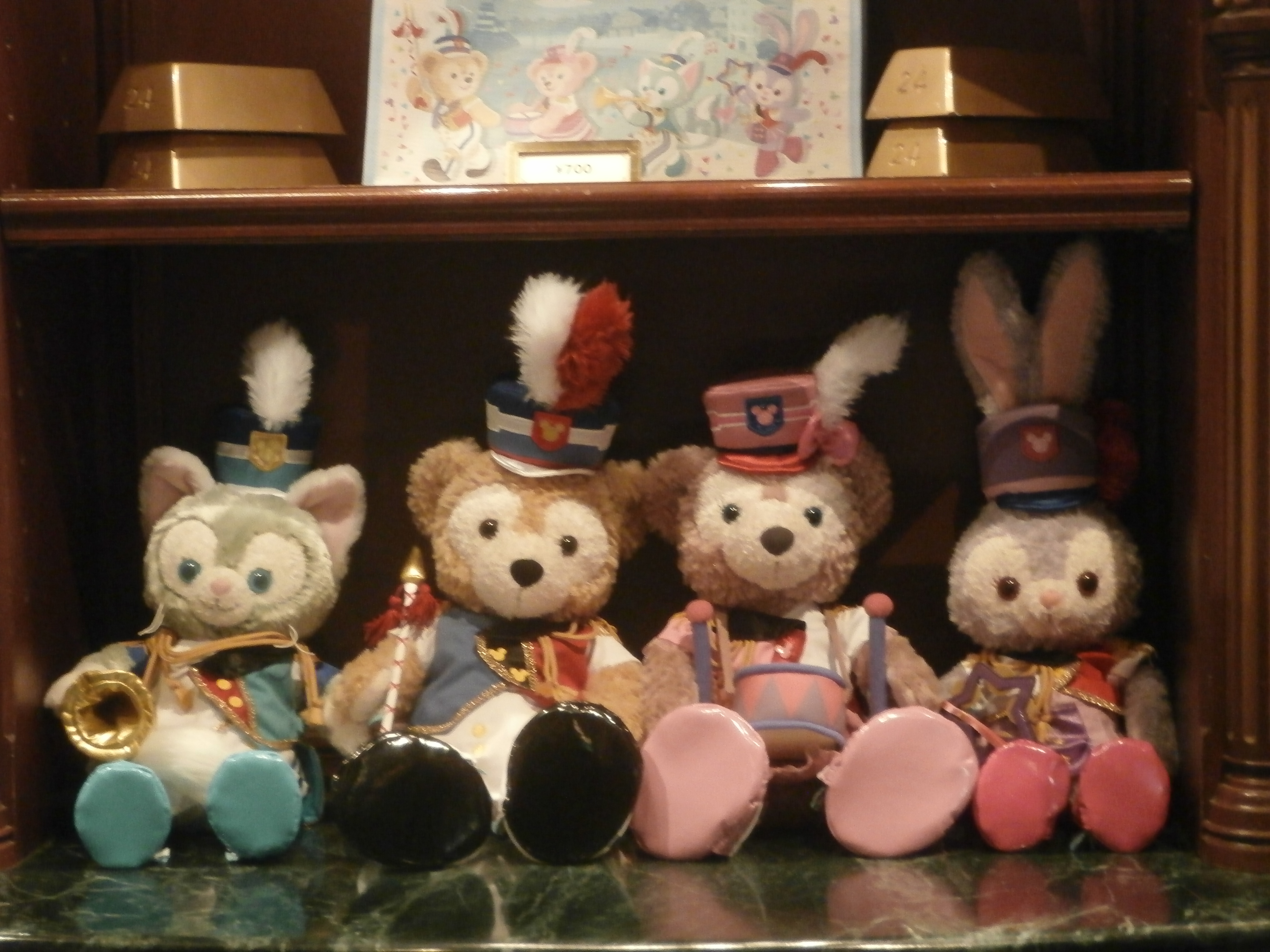 こちらが「ダッフィー&フレンズのマーチングファン」のSSちゃんたちです。左から、ジェラトーニ、ダッフィー、シェリーメイ、ステラ・ルー。1体4,500円