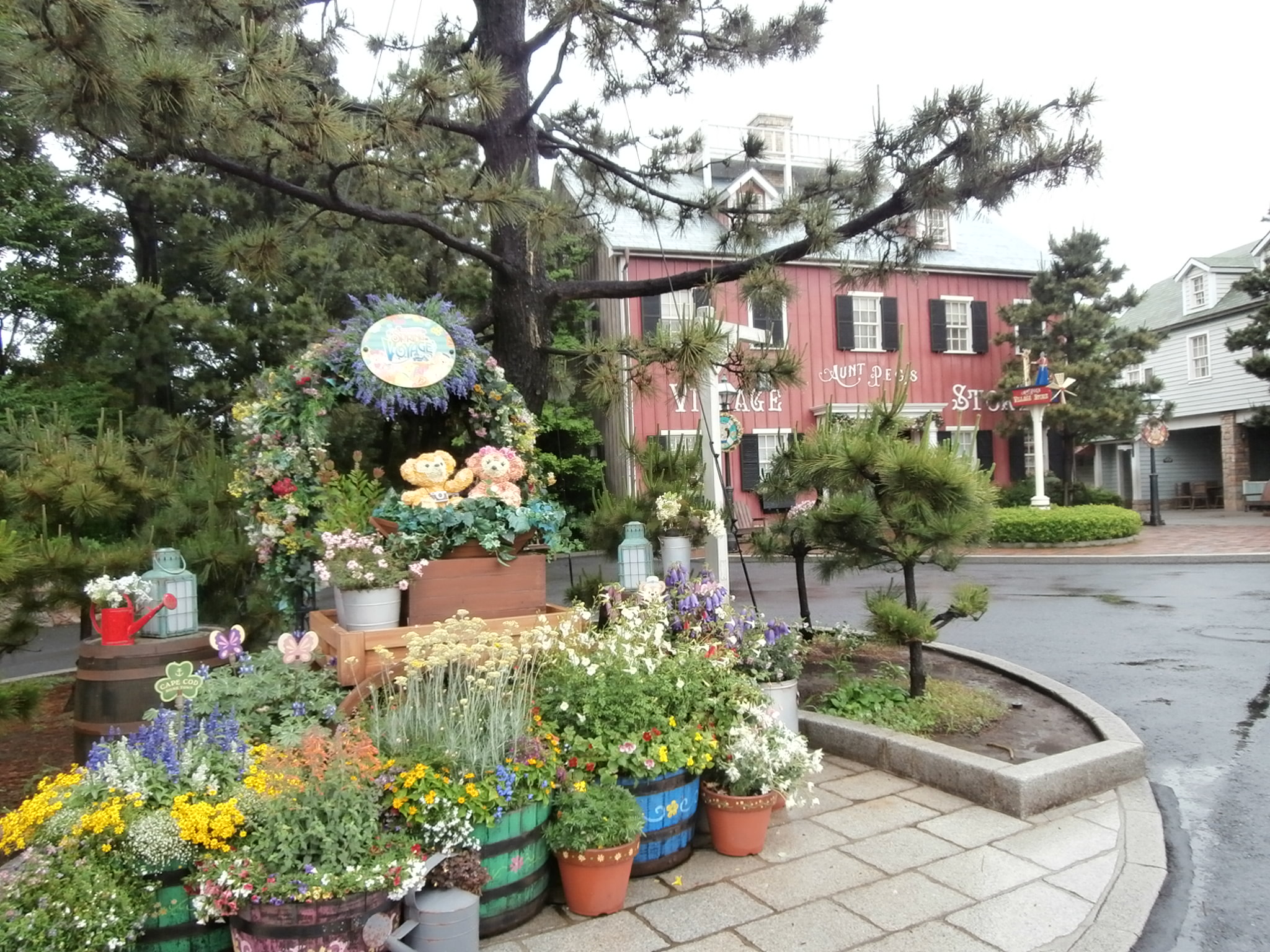 ここがケープコッドで、後ろの赤い建物が「アーント・ペグズ」、その右隣が「マイフレンドダッフィー」を上演している「ケープコッド・クックオフ」です。