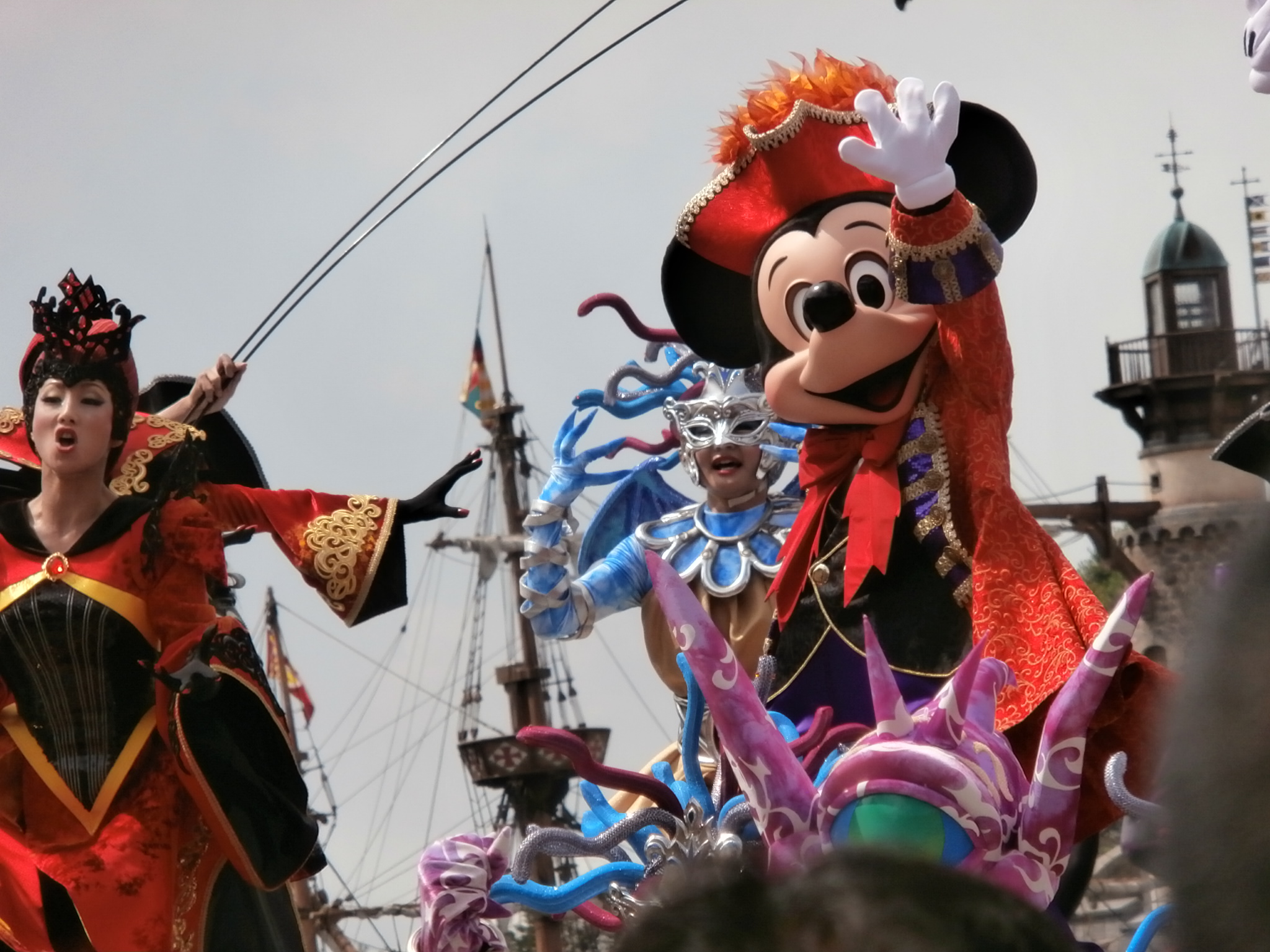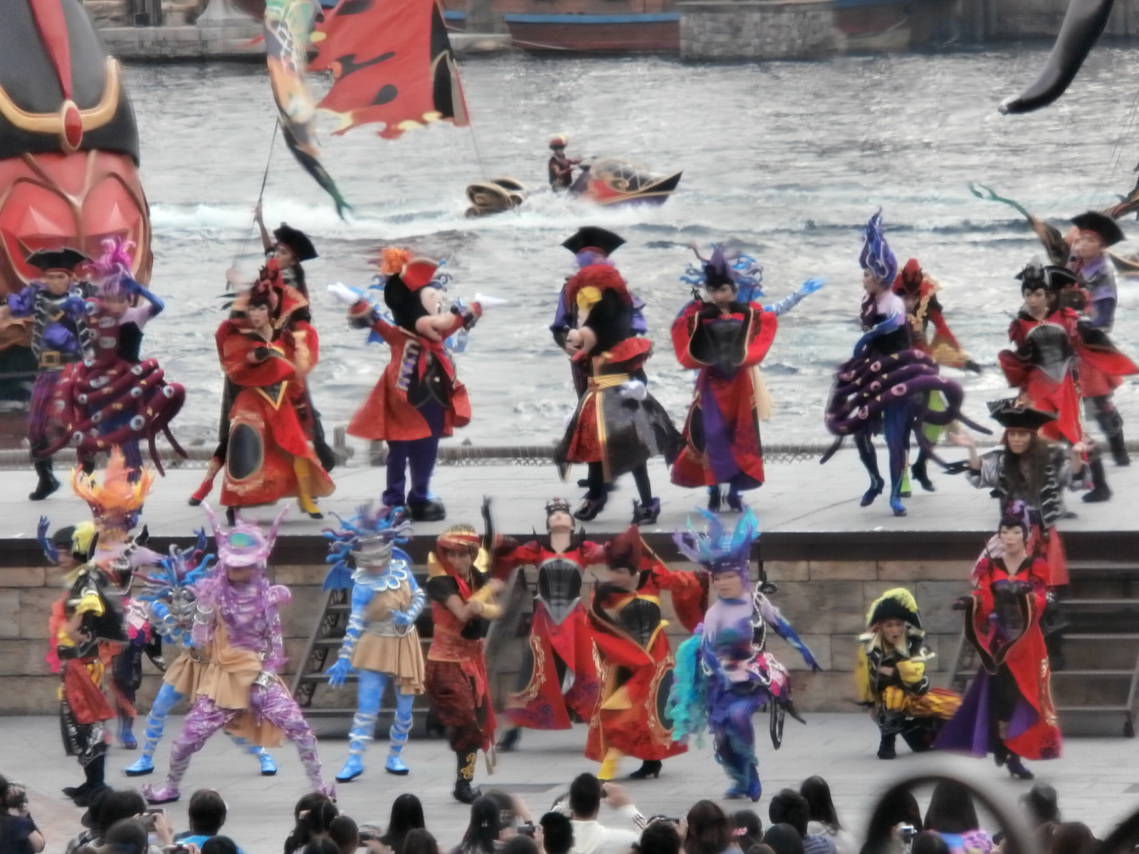 海賊の仮装に身を包み、ヴィランズの家臣たちと踊りまくるミッキー。このショーは、ヴィランズ達が主催するハロウィンパーティに、ミッキーたちが招待されるという設定になっています。