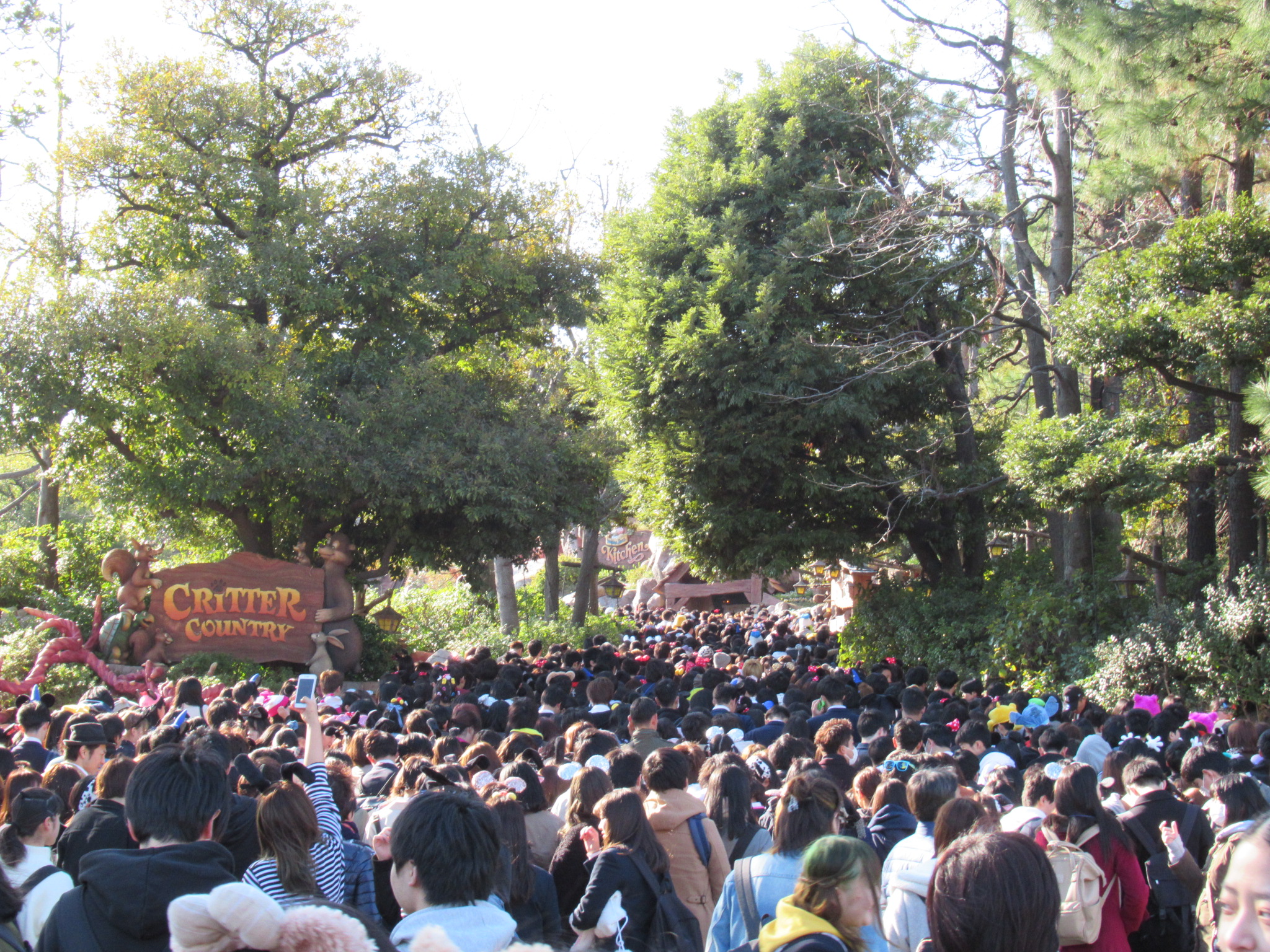 キャンパスデー期間に撮影した、朝イチのクリッターカントリーの様子。まだスマホでFPが施行される前で、当時はスプラッシュマウンテンのFPを求めて、これだけのゲストが一気にクリッターカントリーに押し寄せていたんですよ。
