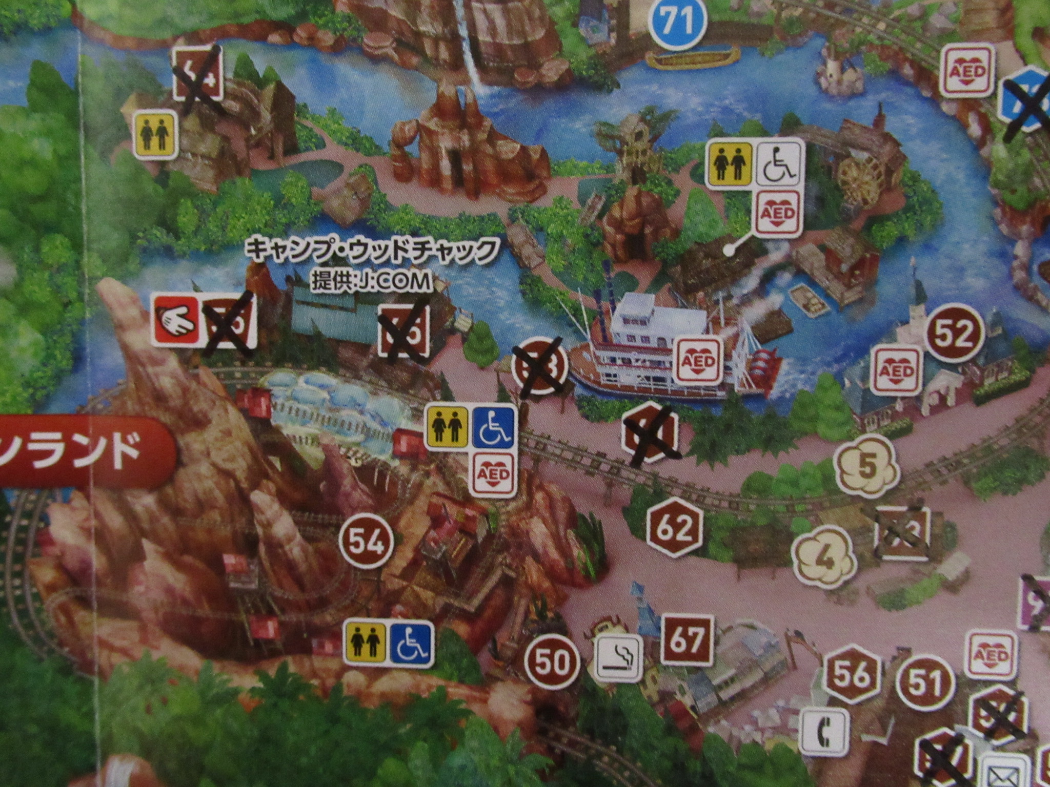 51/カントリーベアシアター、52/マークトウェイン号、54/ビッグサンダーマウンテン