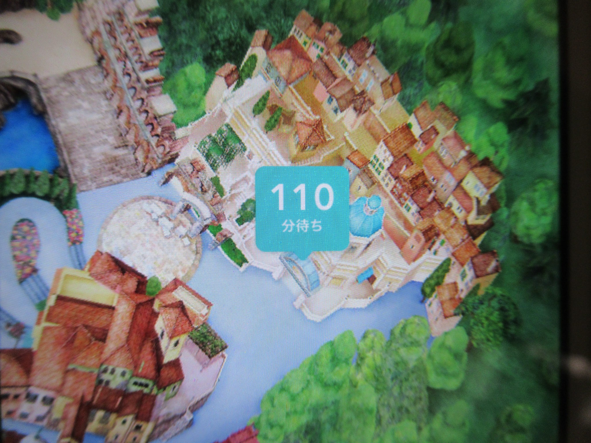 開園直後は、ゲストが集中するため、すぐにスタンバイ80~100分状態に。その後もゲストが途切れず、ずっと50~70分待ち状態が続きます。