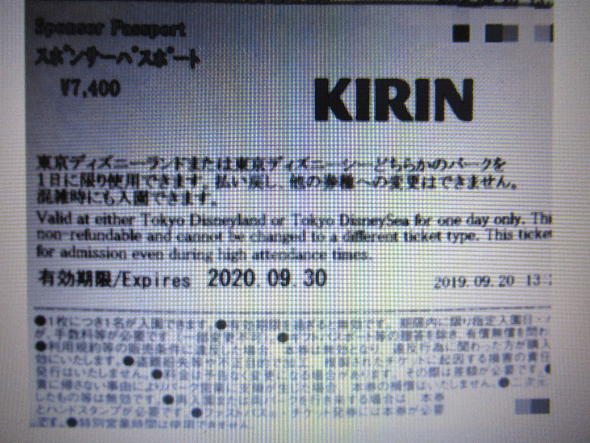 こちらが、スポンサーパスポートです。スポンサーパスポートは、スポンサー企業が懸賞でディズニーチケットをプレゼントする時に使用する券種です。