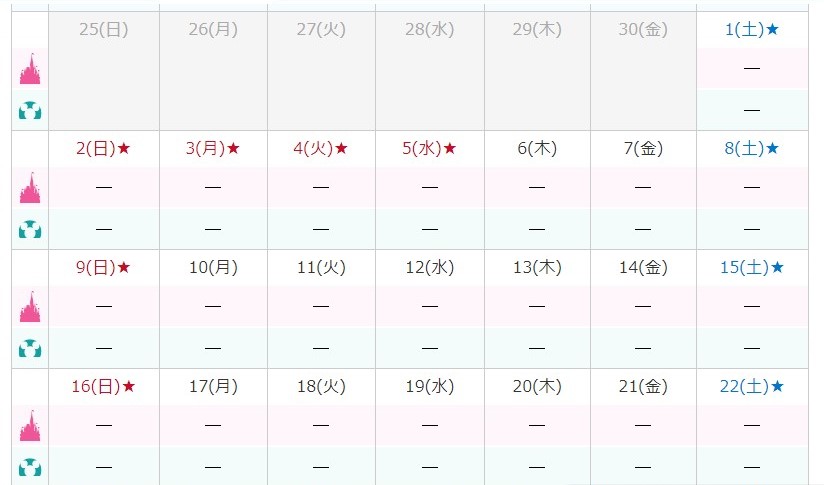 | 日、曜日 | 入園者数予想 | スタンバイ発券状況 |