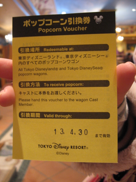これはポップコーン引換券。画像はこの制度が始まって間もない頃に撮影。1枚でリフィル1回分と交換できます。利用期限は、発行日から2か月です。