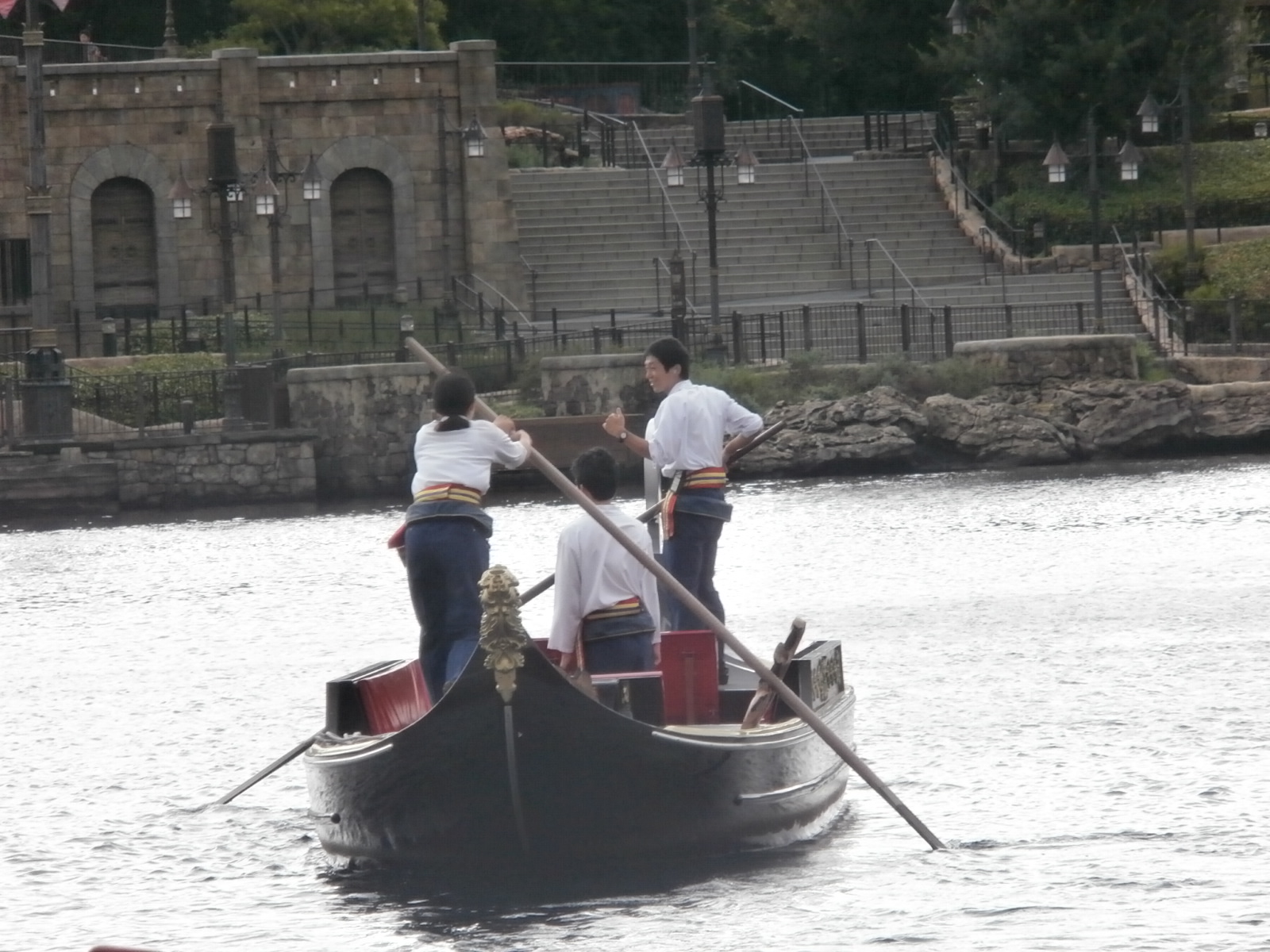 開園前に操船の練習をするゴンドリエキャスト。今日は何人のゲストが利用してくれるのかな?