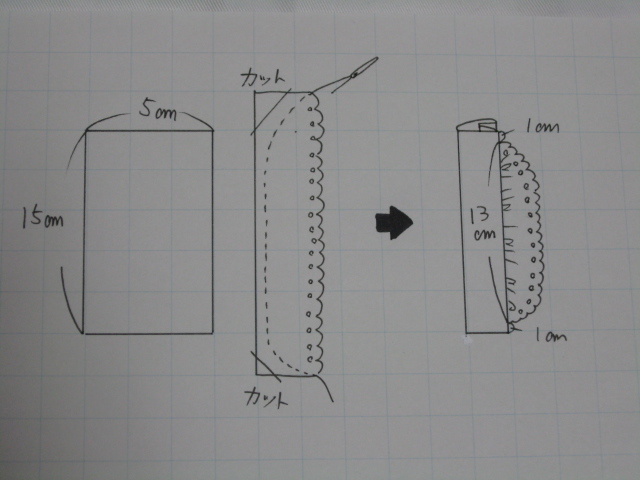 続いて、レースでケープ風の襟を作りましょう。必要な生地のサイズは、前の項目を参考にしてください。