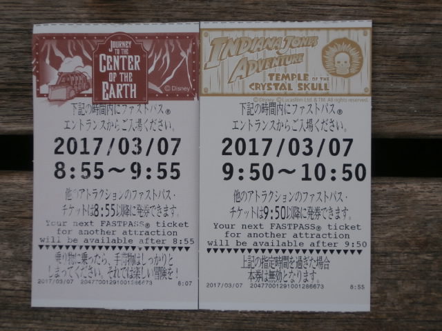 つまり、開園から1時間足らずで、人気の絶叫系のFPが2枚取れたということです。