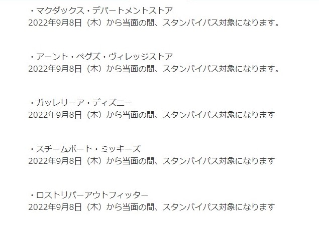 ショップのスタンバイパス発券など、スタンバイパス全般にについては、公式のこちらのサイトに詳しく記載されています。
