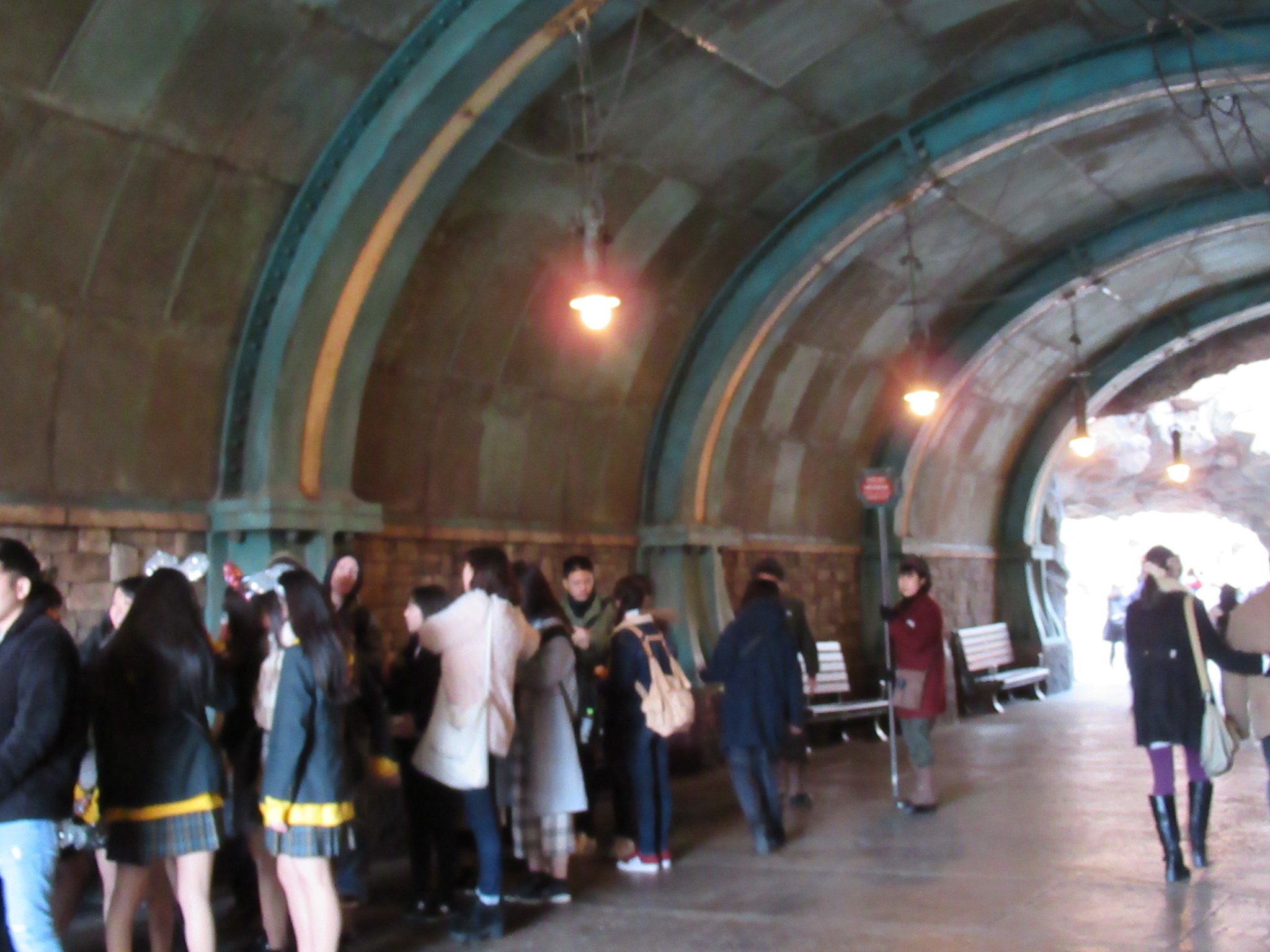 センターの入り口から、ポートディスカバリーに通じるトンネルまで、スタンバイ列が伸びています。ここまでくると、スタンバイ120分はいくなぁ。