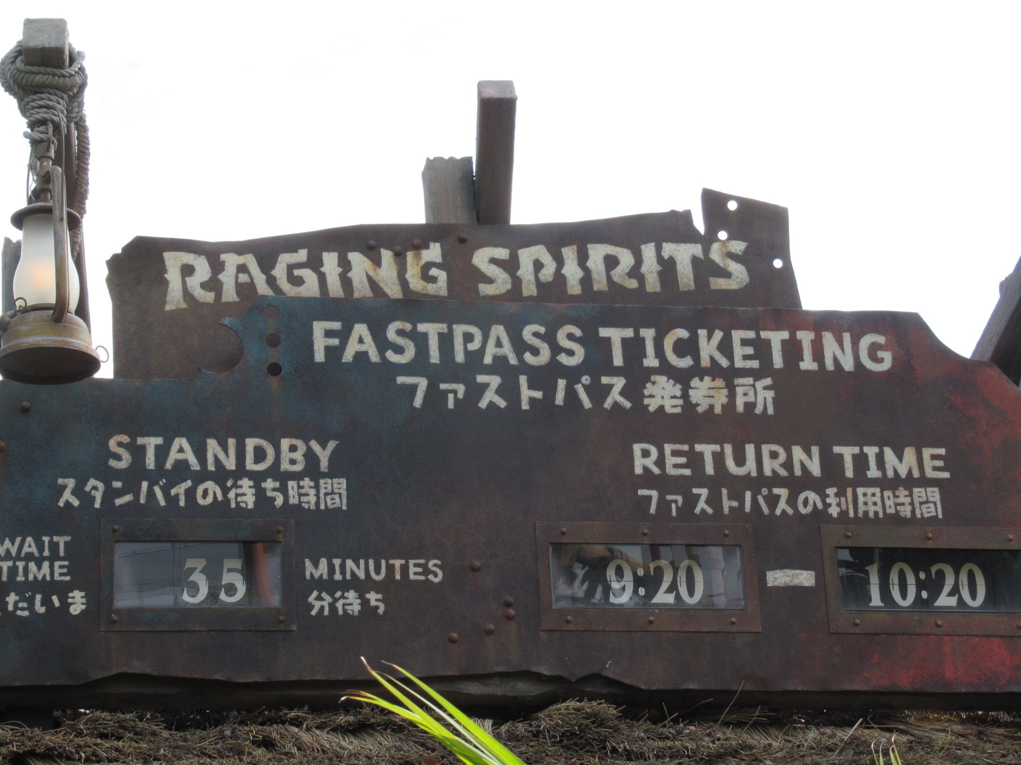 FPの乗車時間は、インディとほぼ同じ。スタンバイ35分は、まだ短いと感じるかも知れないけど、インディの乗車時間は約4分、レイジングは、2分弱のアトラクションなので、「こんなに待ったのに、たった2分?」と、喪失感が大きいのが難ですね。